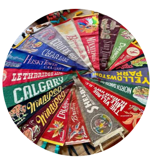 There’s a certain charm in the faded felt and crackled iron-on logos of vintage pennants—each one worn by time and rich with history. I knew I wanted to incorporate a few local ones into the decor, blending the modern wallpaper with nostalgic touches from the past. But with limited wall space, the oversized pennants I first envisioned wouldn’t work. Instead, I sourced particular vintage pennants — retro colored ones from places I’d never been (so I wouldn’t feel guilty about cutting them up!) and then transformed them into a bunting-style banner. It was a sustainable choice, too; repurposing existing textiles felt more authentic than buying new fabric. Beyond their eco appeal, the original faded hues and irregular sizes gave each flag its own character. The finished banner now welcomes guests into the loft bedroom— a one-of-a-kind accent that infuses the room with relaxed color, warmth, and a touch of nostalgia, bridging new design with aged decor.