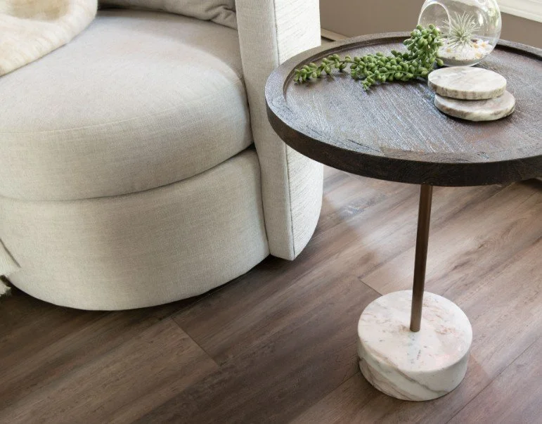 One of the goals for this room was to create a calming atmosphere—light, bright, and minimal in pattern. After relocating from Eastern Canada, the homeowner wanted colors that reflected the spirit of our West Coast. To offer a thoughtful interior decorating experience, I incorporated custom fabric into this made-to-order swivel chair. The back features a subtly textured textile, reminiscent of a sandy shoreline, with soft sea green and faded pink tones that echo sea glass and the delicate hues found inside seashells.